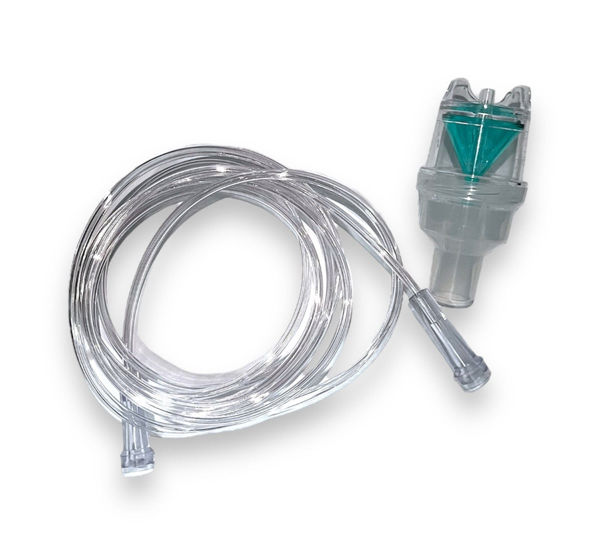 Micronebulizador tamaño adulto con mascarilla para aerosol de cintilla elástica con tubo de suministro de 2.1 metros.
